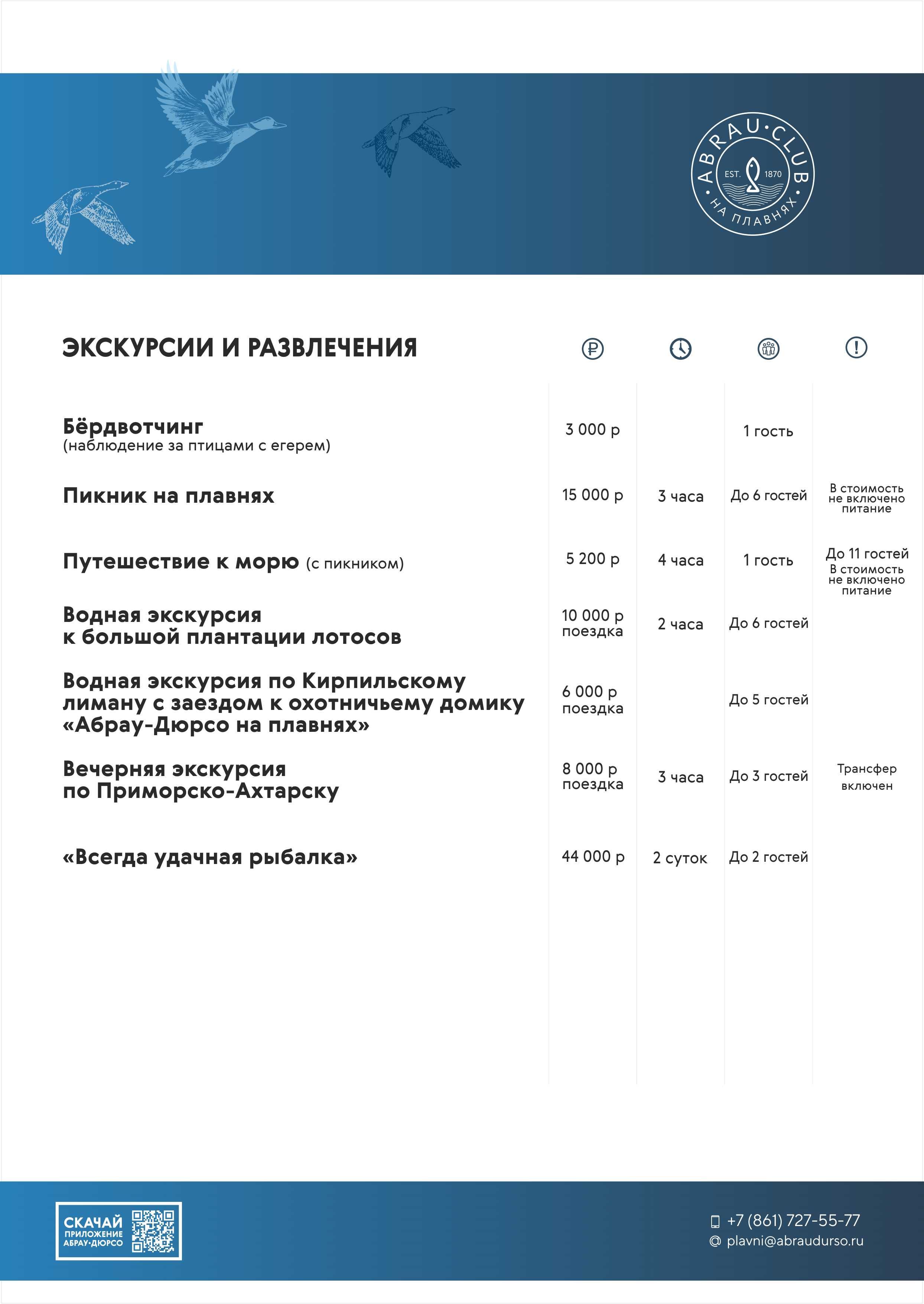 В стоимость включен трансфер от сафари отеля «Abrau Club на Плавнях» 4* и обратно.
