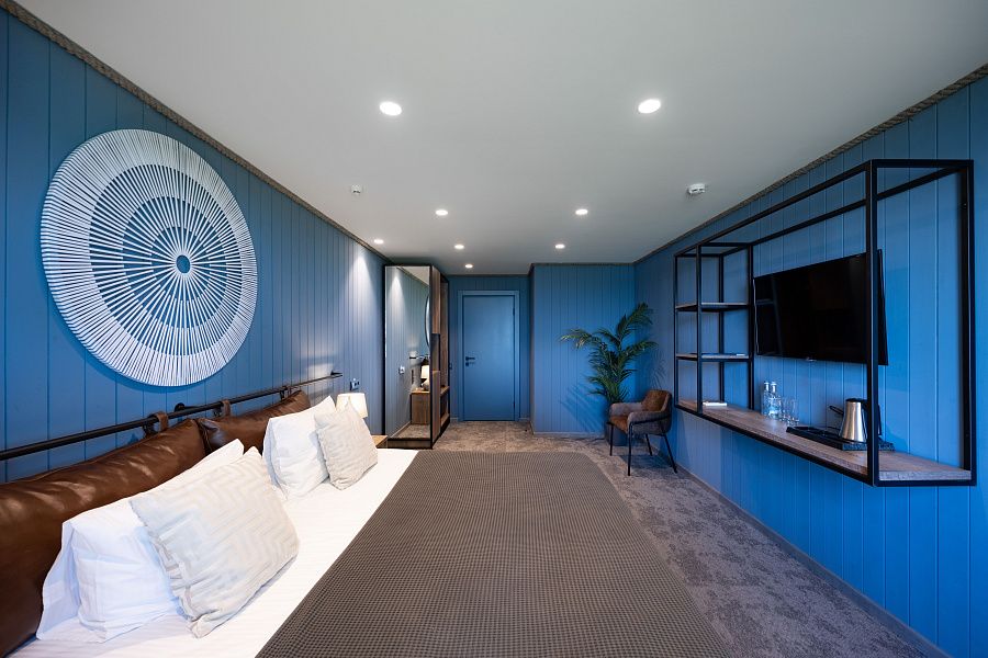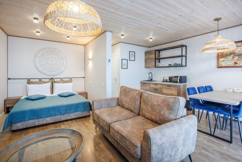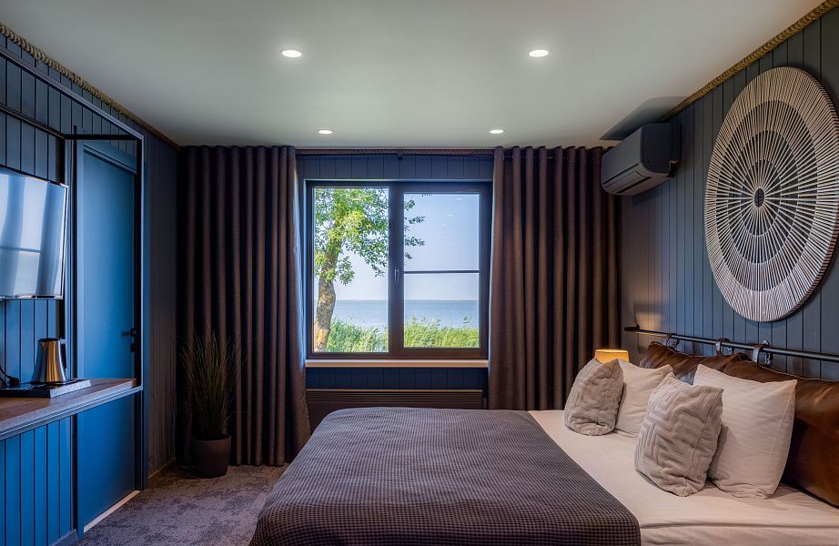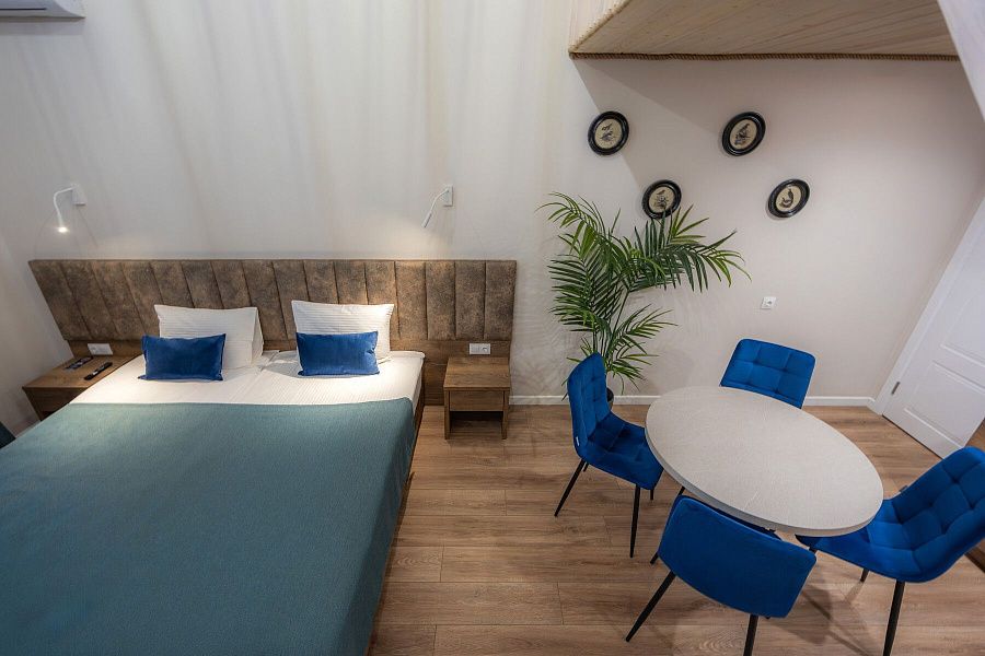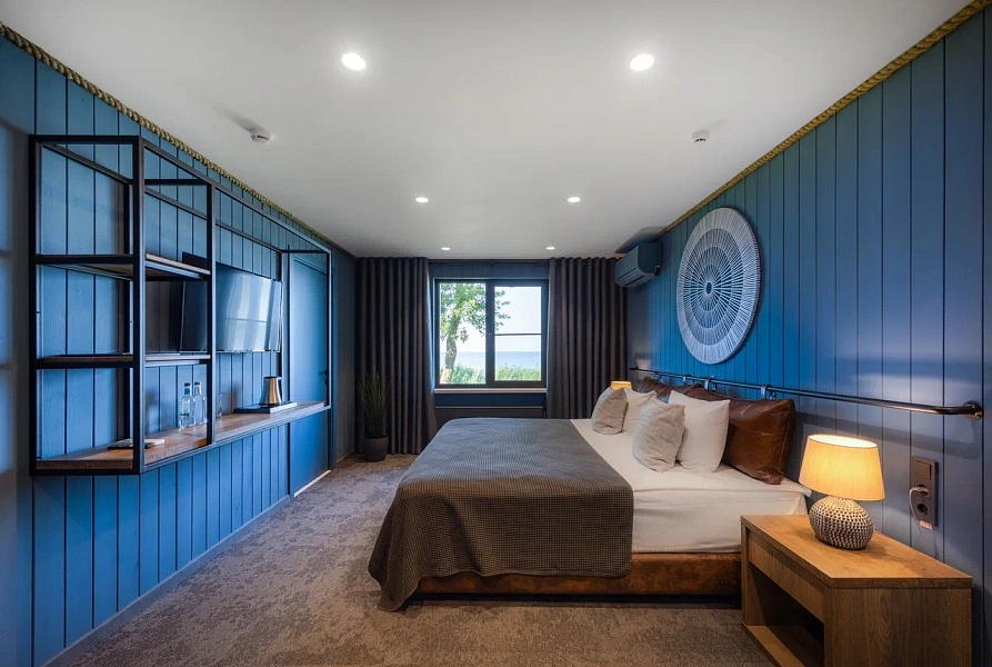 В стоимость проживания входит: рабочий стол, шкаф, телевизор, мини-бар, сейф, сплит-система, фен, душ, набор косметики и гигиенических принадлежностей, бесплатный Wi-Fi, вид из окна на Большой Кирпильский лиман.