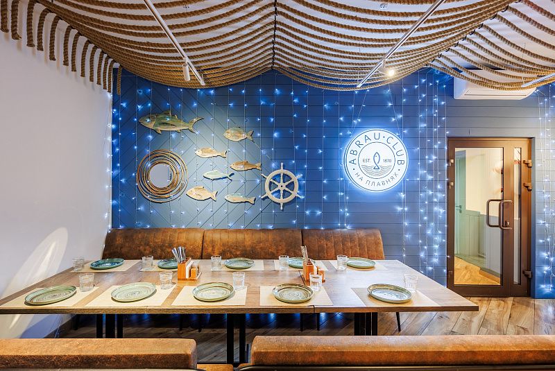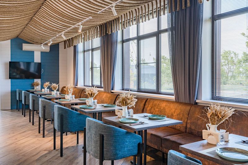 Ресторан сафари-отеля «Abrau Club на Плавнях» 4* предлагает блюда авторской кухни в аккомпанементе с продукцией винного дома Абрау-Дюрсо. Особого внимание заслуживает услуга трофейного приготовления. Также гости базы отдыха могут арендовать зал ресторана для мероприятий и детских праздников.