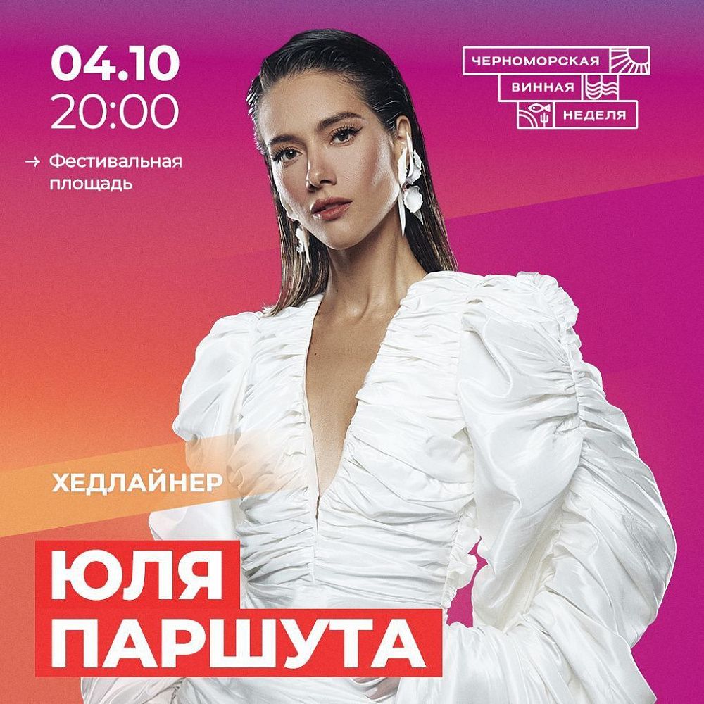 4 октября на Черноморской винной неделе выступит Юля Паршута! Сольное выступление певицы начнется в 20.00 на Площади Александра II в Центре винного туризма Абрау-Дюрсо.