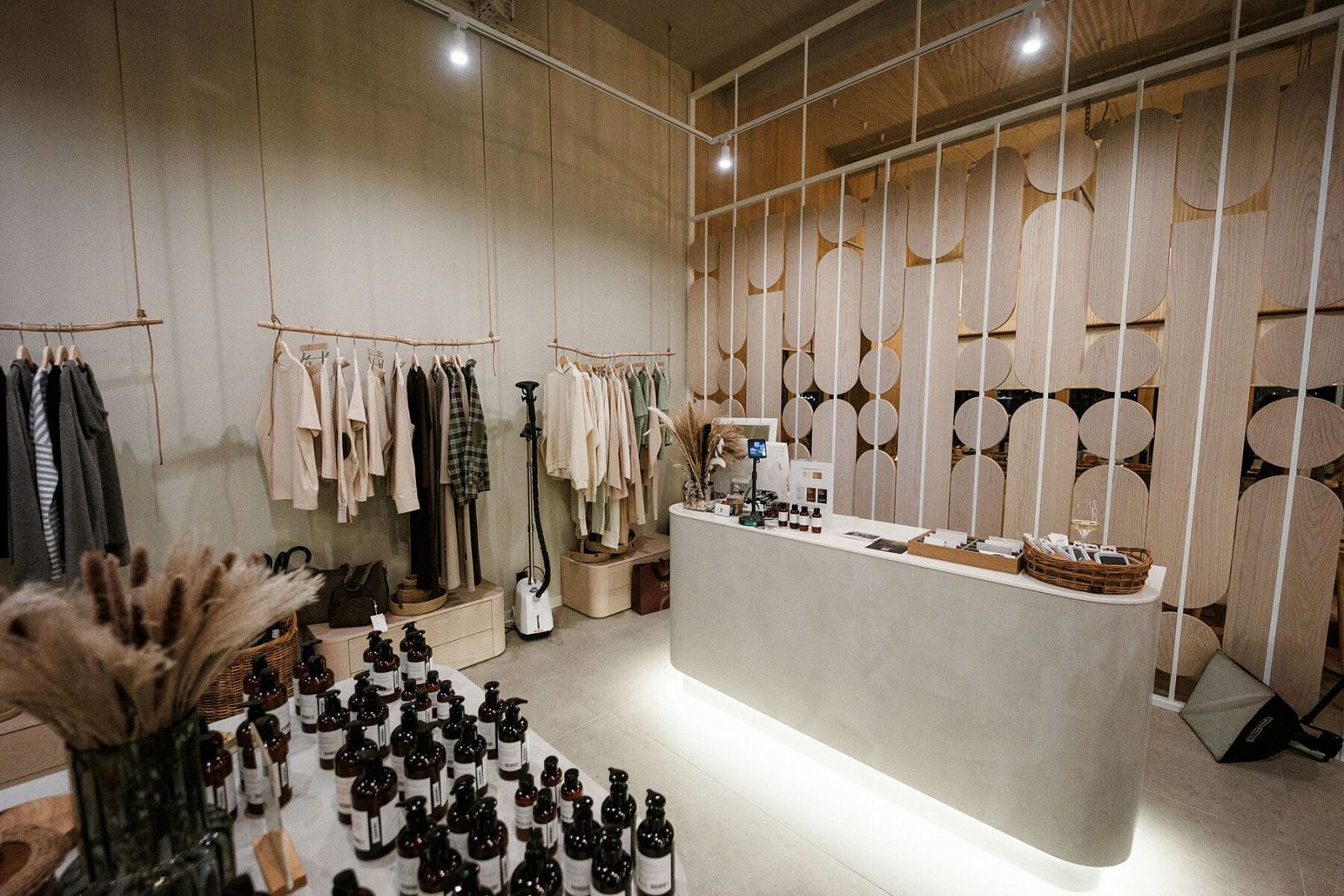 Особую часть пространства занимает коллекция одежды COCOS — комфортная базовая одежда из натуральных тканей в минималистичном стиле. Простые силуэты, мягкие фактуры и универсальные модели подойдут для отдыха, путешествий и неспешных прогулок по набережной. В пространстве также представлены совместные капсулы COCOS × Abrau Club — унисекс-коллекции для всей семьи.