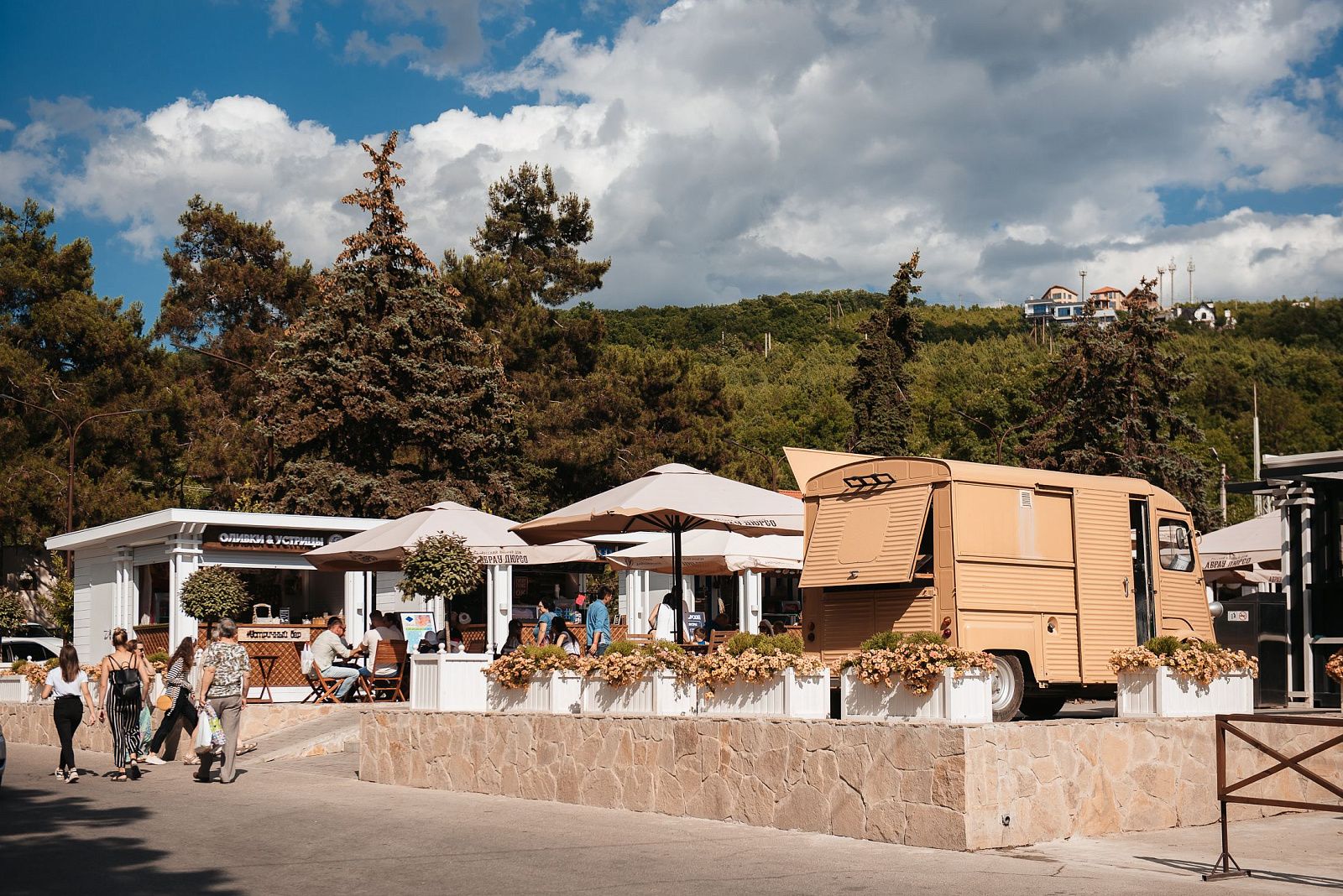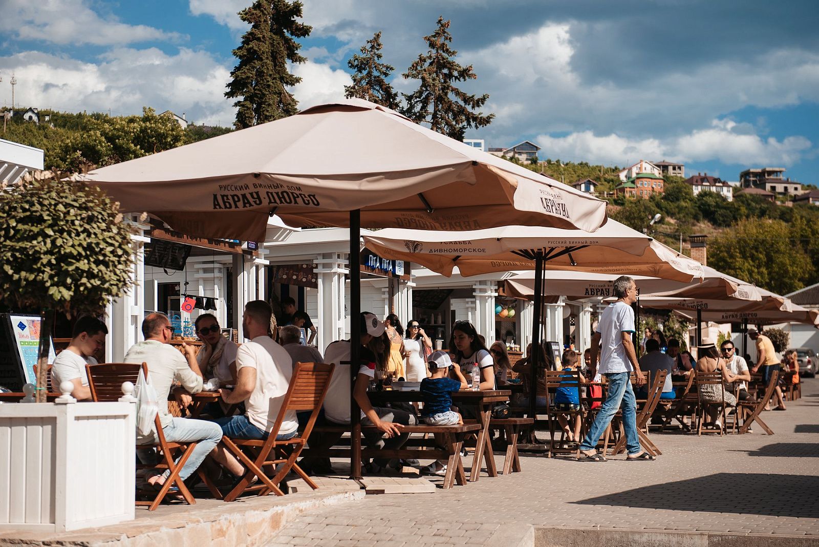 Фудкорт в Абрау-Дюрсо – гастрономическая площадь, где в каждом домике представлены последние стритфуд-тренды. На фудкорте вы познакомитесь с блюдами черноморской, кавказской, паназиатской, американской, греческой и многих других кухонь. Расположиться можно за одним из столиков под зонтом, который поможет скрыться от южного солнца.