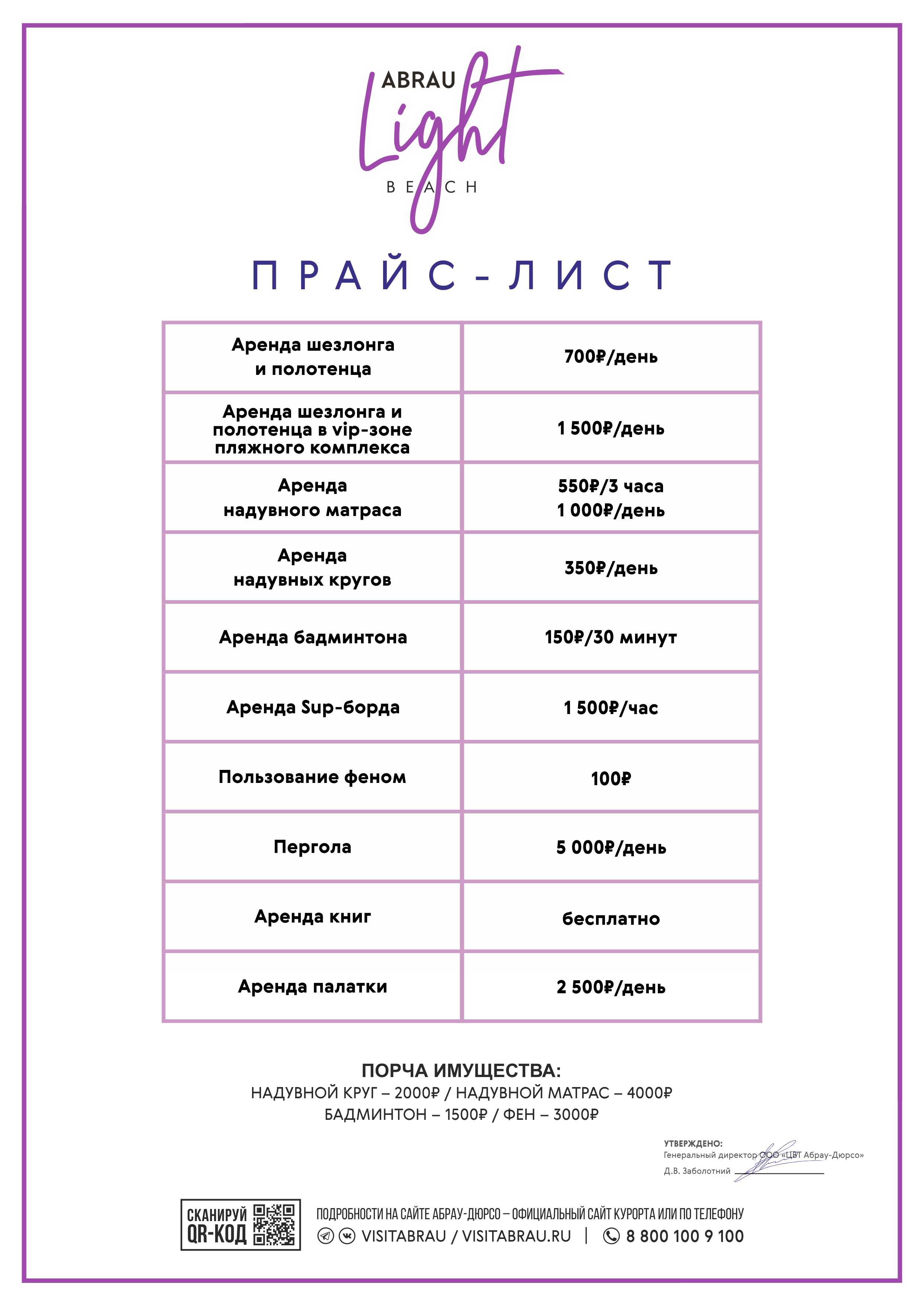 В летний сезон для постояльцев бутик-отеля «Империал», отеля Abrau Light Resort&SPA, Усадьбы «Круглое озеро», йога-кемпинга «Эколоджия» и туристического лагеря «Абрау-Дюрсо» бесплатно предоставляется проезд на комфортабельном шаттле до пляжа и обратно, а также шезлонг и полотенце.