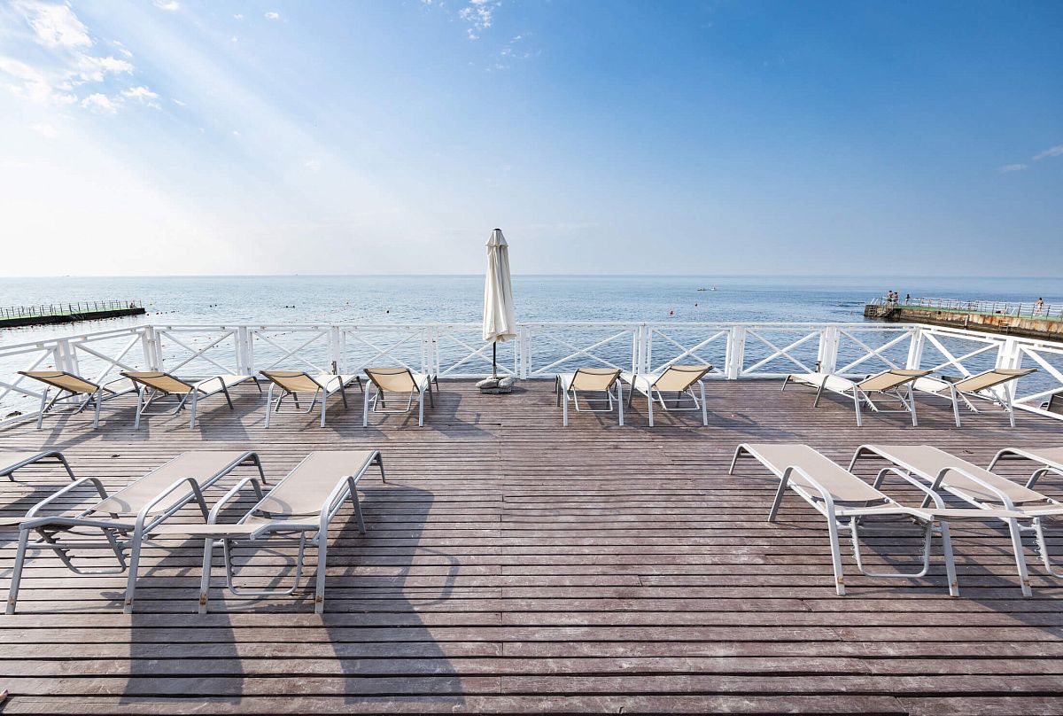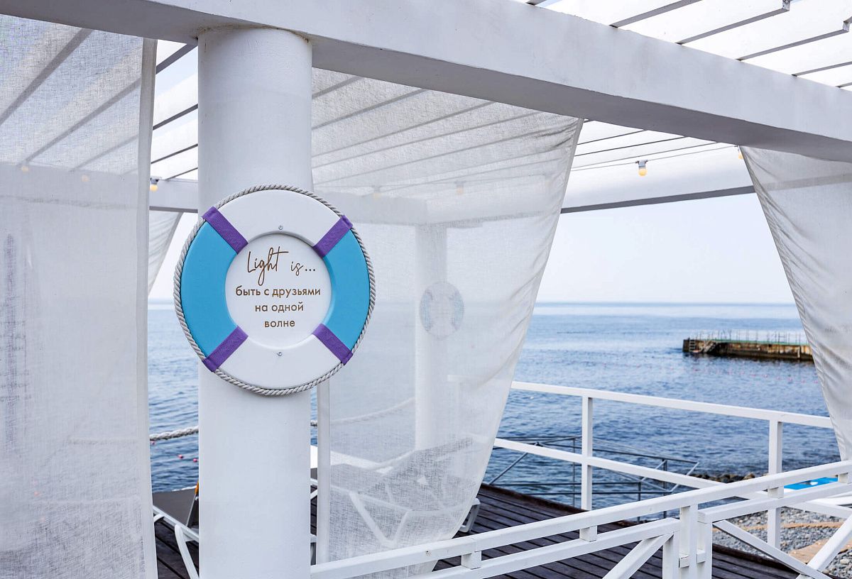 Пляж Abrau Light Beach — это чистейшая вода, комфортные деревянные патио с шезлонгами, душевые кабинки и lounge-бар с прохладительными напитками. Всё, что нужно для комфортного отдыха.