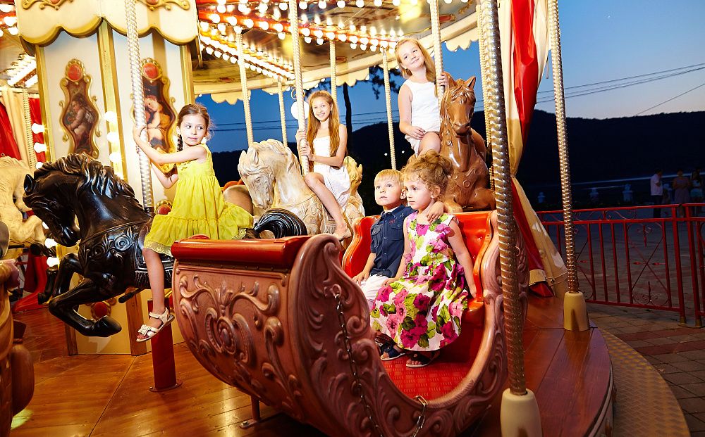 Аттракцион, созданный больше века назад мастерами завода «Ламборджини». Под беззаботные мелодии гости переносятся в настоящую сказку. Нарядная и задорно подмигивающая огоньками карусель навсегда останется в памяти вашего ребенка.Излюбленный аттракцион всех маленьких гостей Абрау-Дюрсо! В красочном шатре с яркими лошадками, нарядными санями или каретой XIX века дети чувствуют себя настоящими принцами и принцессами.