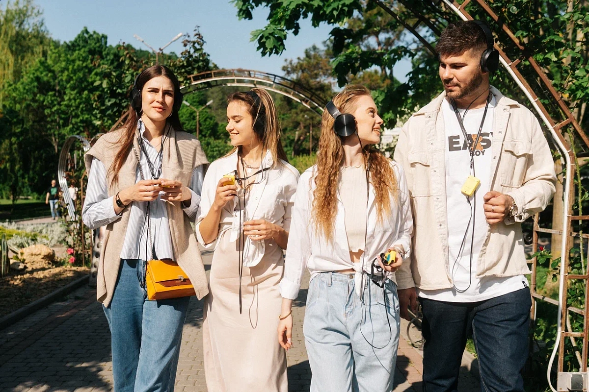 Надеваете наушники, выходите на променад и погружаетесь в историю от царских времен до наших дней. Декорациями служат улицы поселка и здания вдоль маршрута. Вас ждет путешествие по трем эпохам: царская, советская, современность и взгляд на будущее.